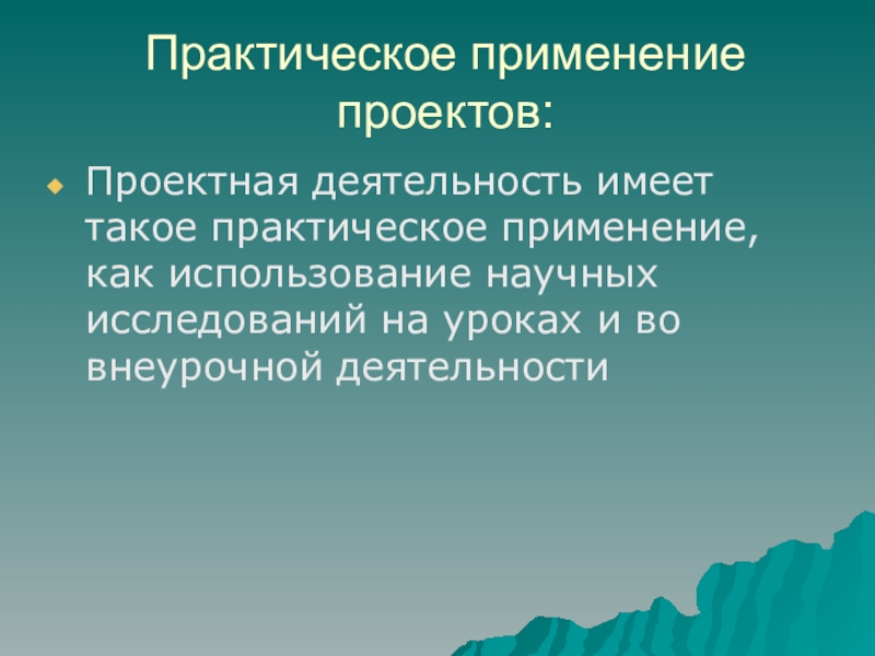 Проектная деятельность имеет такое практическое применение, как использование научных