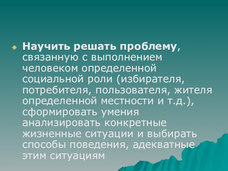 Научить решать проблему, связанную с выполнением человеком определенной социальной роли (избирателя,