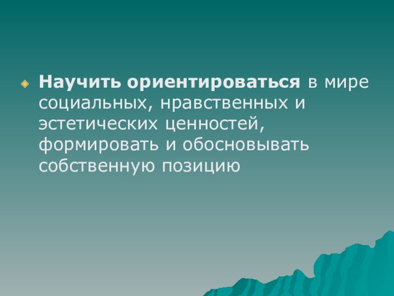 Научить ориентироваться в мире социальных, нравственных и эстетических ценностей, формировать и