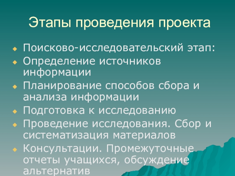 Слайд 21Этапы проведения проекта