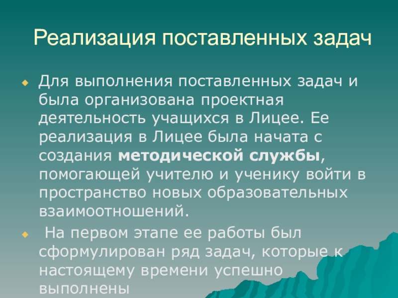 Слайд 9Реализация поставленных задач