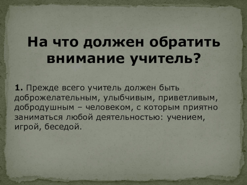 улыбчивым, приветливым, добродушным – человеком, с которым приятно заниматься любой деятельностью: учением, игрой, беседой.