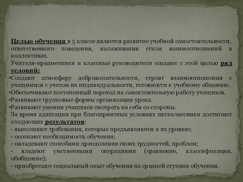 Слайд 3Целью обучения в 5 классе является развитие учебной самостоятельности,
