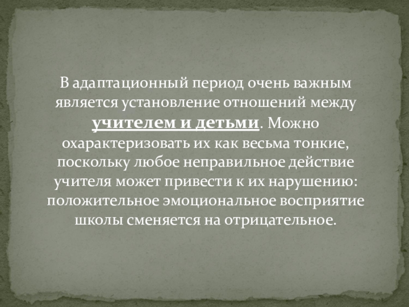 детьми. Можно охарактеризовать их как весьма тонкие, поскольку любое неправильное действие учителя может привести к их нарушению: положительное эмоциональное восприятие школы сменяется на отрицательное.