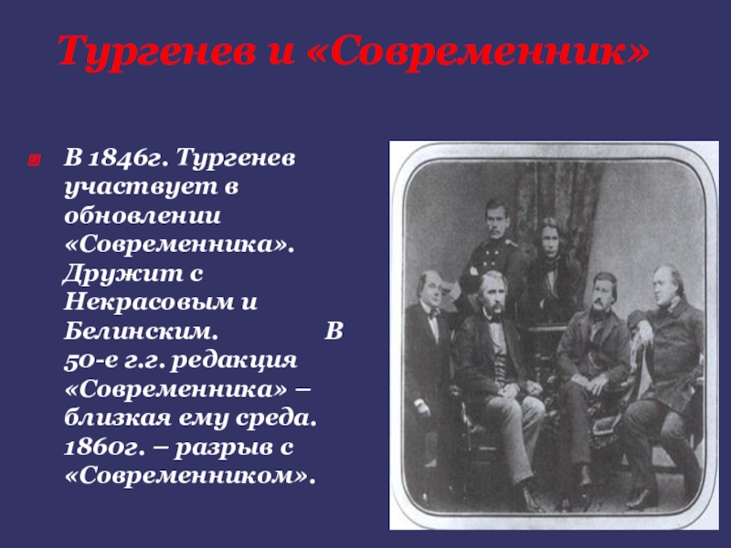 В 1846г. Тургенев участвует в обновлении «Современника». Дружит с