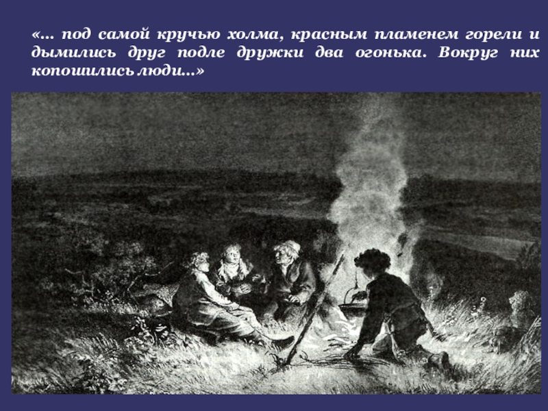 Слайд 22«… под самой кручью холма, красным пламенем горели и дымились друг