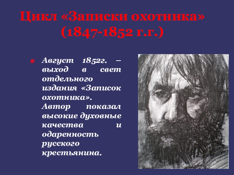издания «Записок охотника». Автор показал высокие духовные качества и одаренность русского крестьянина.