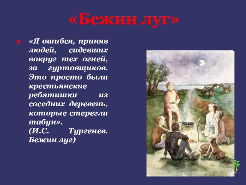 Это просто были крестьянские ребятишки из соседних деревень, которые стерегли табун». (И.С. Тургенев. Бежин луг)