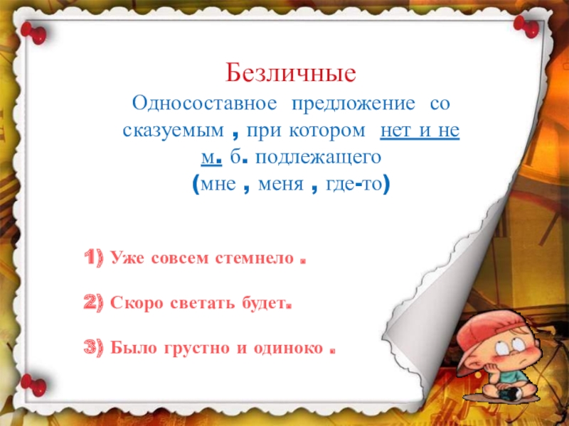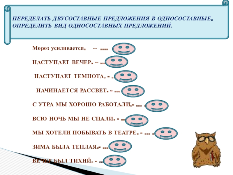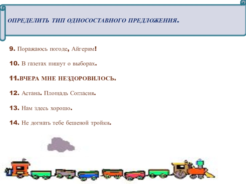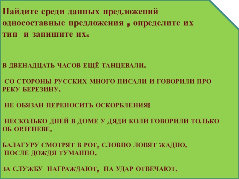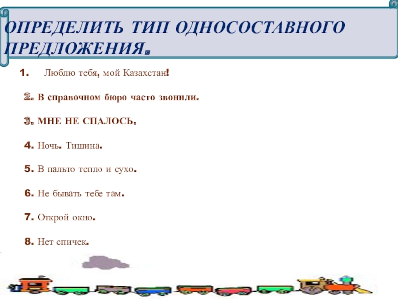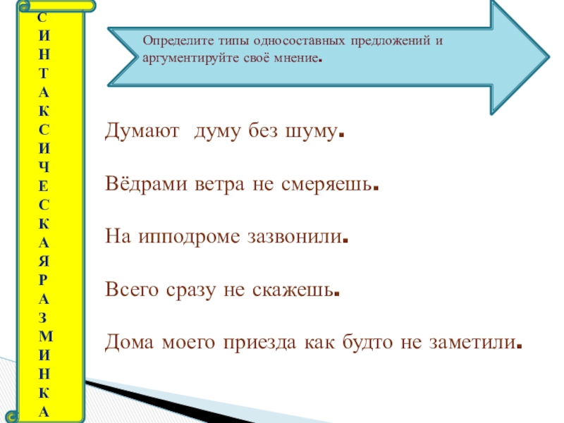 Определите типы односоставных предложений и аргументируйте своё мнение.
