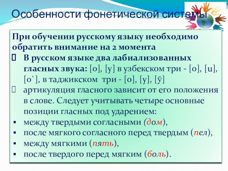 Необходимо обратить внимание учащихся на позиции редуцированного звука с