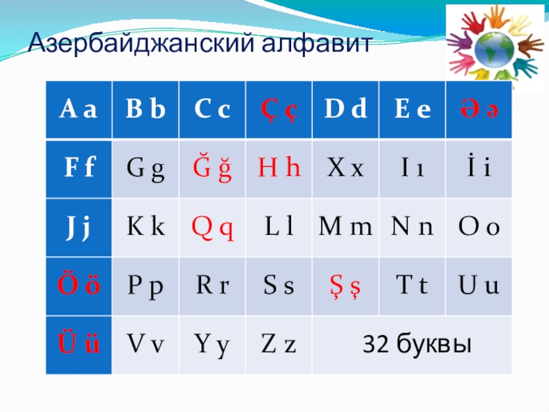 В азербайджанском языке существуют три официальные алфавитные системы: