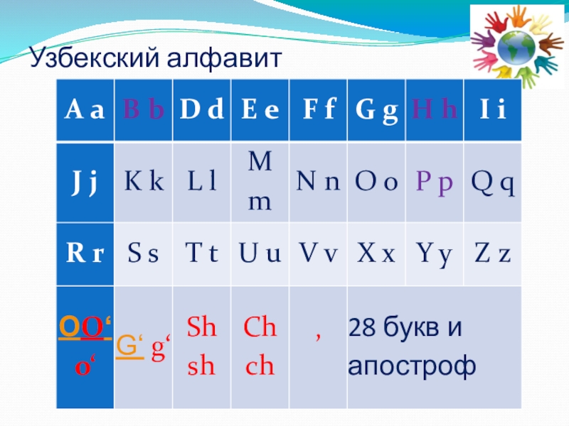 ҳ, ў, қ, ҷ, ғ, ӣ