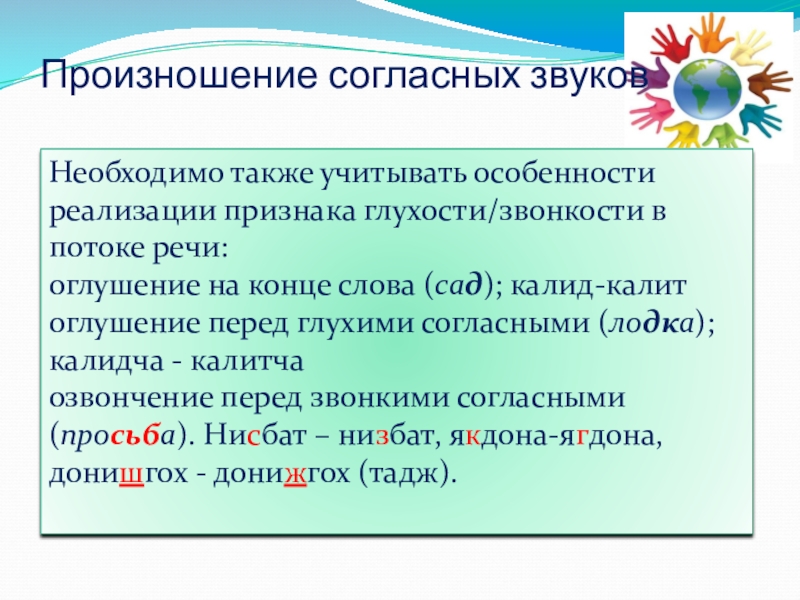 озвончение перед звонкими согласными (просьба). Нисбат – низбат, якдона-ягдона,