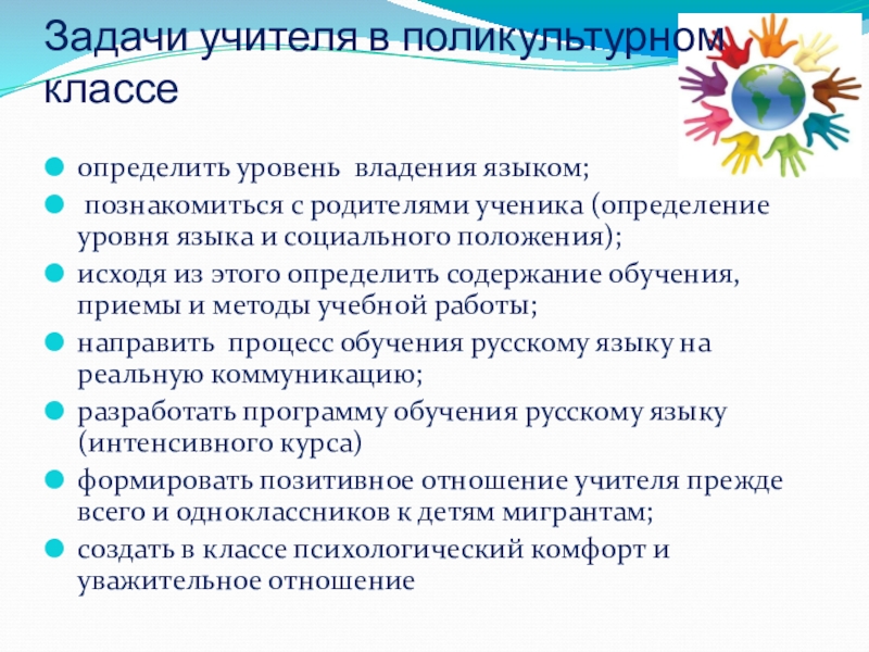 формировать позитивное отношение учителя прежде всего и одноклассников к детям мигрантам;