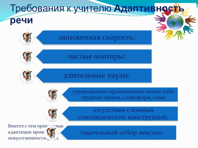 Слайд 28Вместе с тем чрезмерная адаптация приводит к искусственности речи.