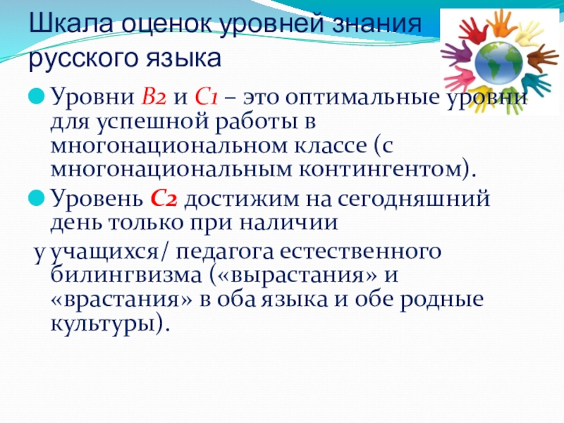 оптимальные уровни для успешной работы в многонациональном классе (с многонациональным контингентом).
