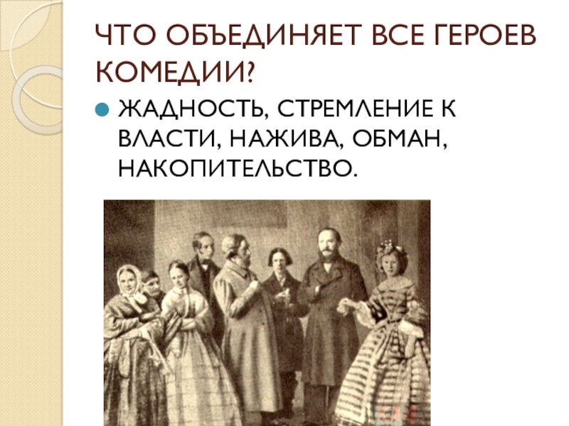 Слайд 21ЧТО ОБЪЕДИНЯЕТ ВСЕ ГЕРОЕВ КОМЕДИИ?