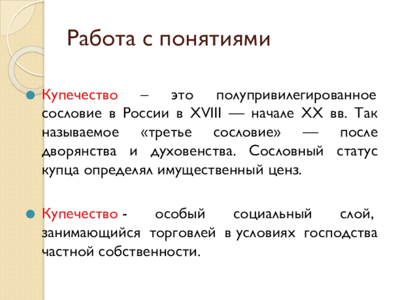— начале ХХ вв. Так называемое «третье сословие» — после дворянства и духовенства. Сословный статус купца определял имущественный ценз.