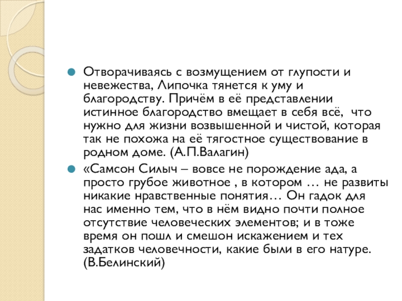 Слайд 24Отворачиваясь с возмущением от глупости и невежества, Липочка тянется к уму