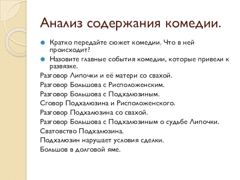 Кратко передайте сюжет комедии. Что в ней происходит?