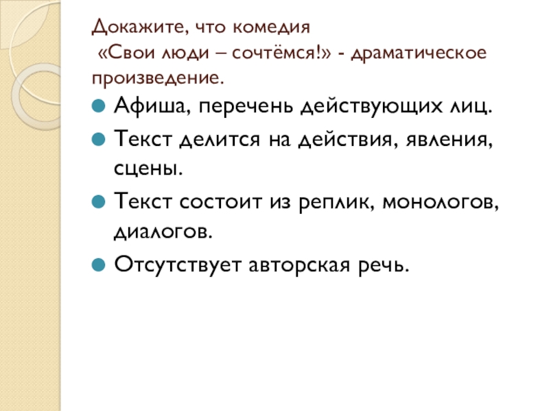 Слайд 4Как известно, пьеса «Свои люди – сочтёмся!» имела первоначально другое название.