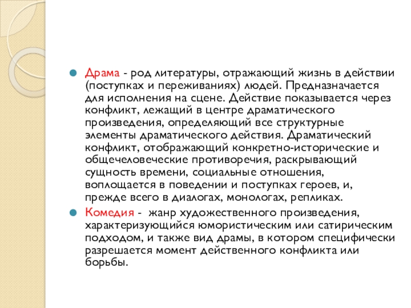 Слайд 9Драма - род литературы, отражающий жизнь в действии (поступках и переживаниях)