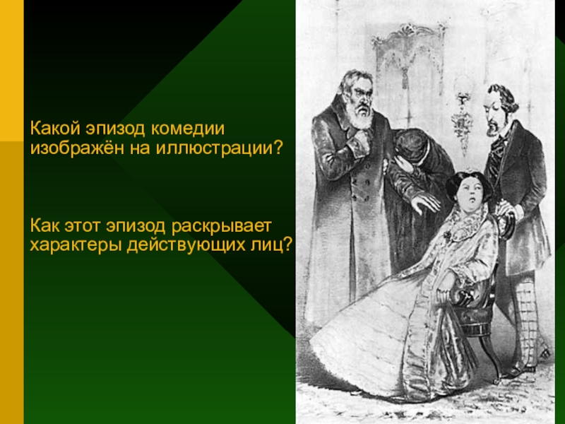 Слайд 22Какой эпизод комедии изображён на иллюстрации?