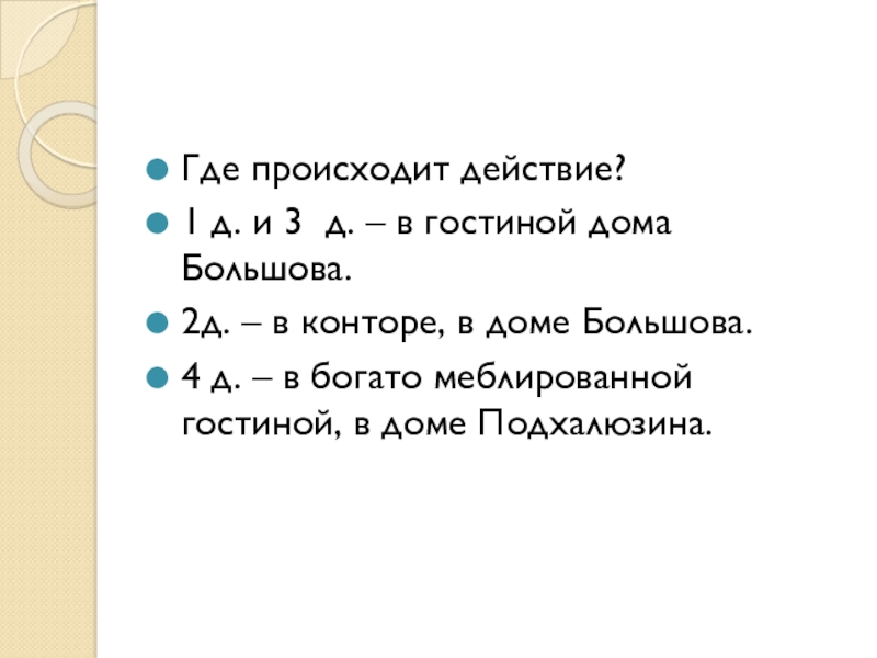 4 д. – в богато меблированной гостиной, в доме Подхалюзина.