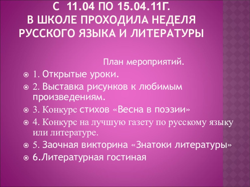4. Конкурс на лучшую газету по русскому языку или литературе.