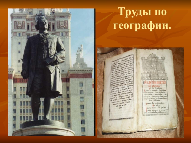 Слайд 15Открытия М.В.Ломоносова в географии и астрономии.