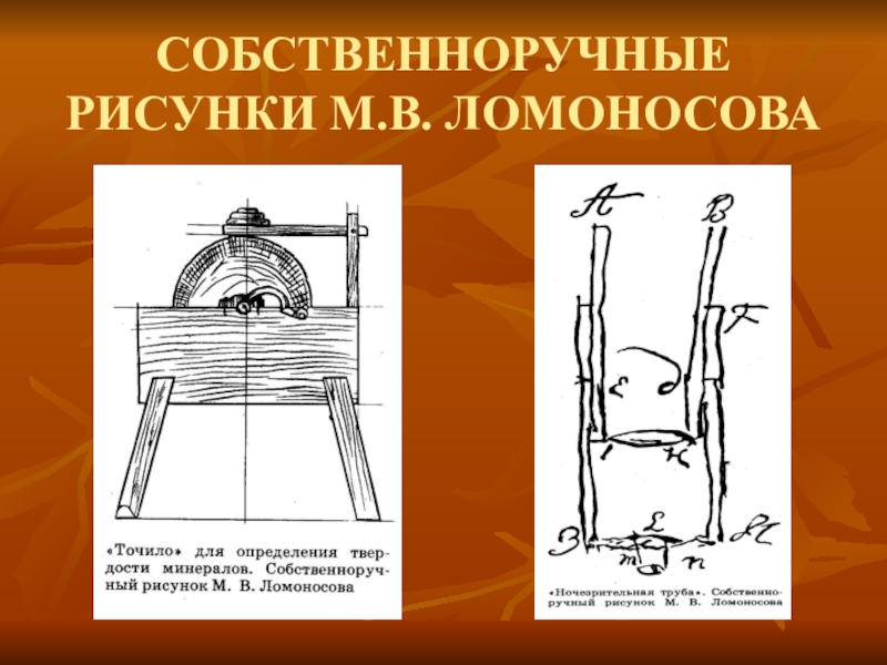 Слайд 17СОБСТВЕННОРУЧНЫЕ РИСУНКИ М.В. ЛОМОНОСОВА