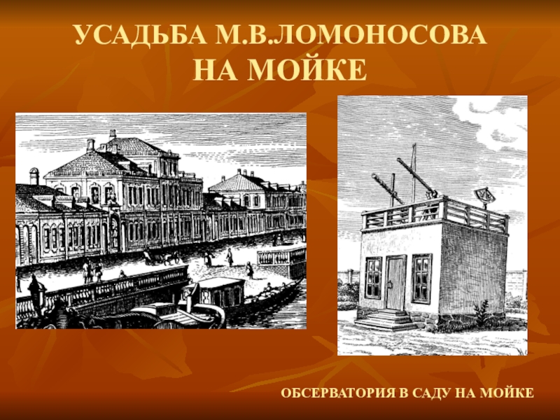 УСАДЬБА М.В.ЛОМОНОСОВА НА МОЙКЕОБСЕРВАТОРИЯ В САДУ НА МОЙКЕ