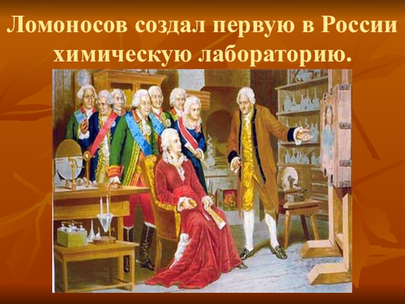 Слайд 4Ломоносов создал первую в России химическую лабораторию.