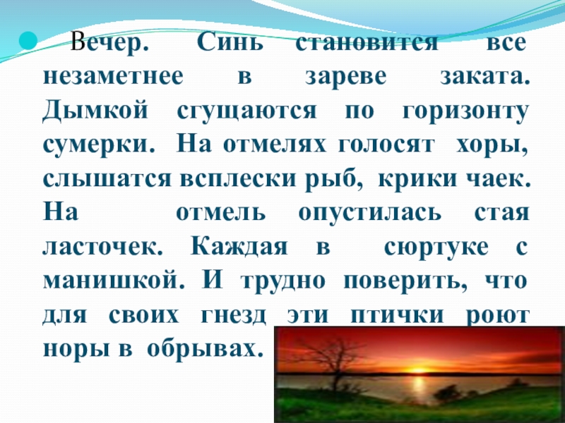 Слайд 9 Вечер. Синь становится все незаметнее в зареве заката.