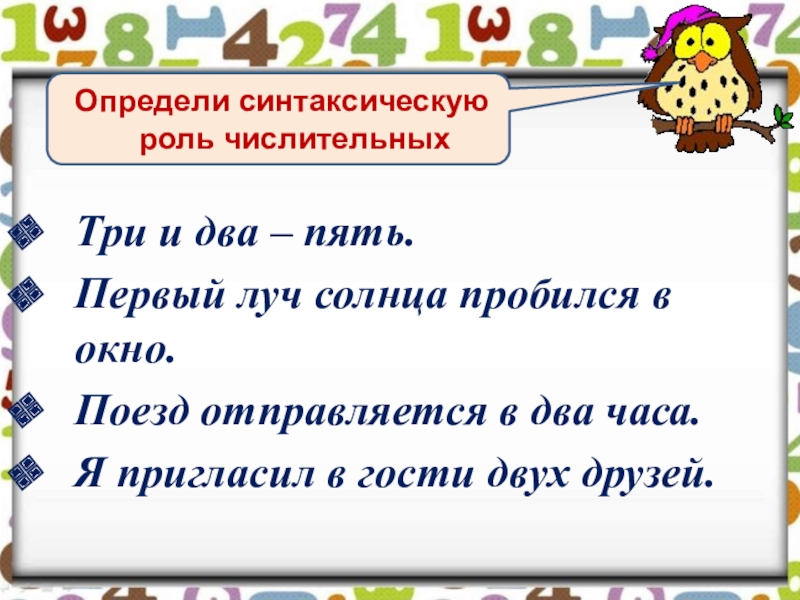 Определи синтаксическую роль числительных
