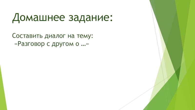 Слайд 16Домашнее задание: Составить диалог на тему: «Разговор с другом о …»