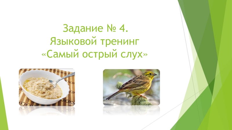 Слайд 8 Задание № 4. Языковой тренинг «Самый острый слух»