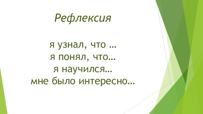 Рефлексия  я узнал, что … я понял, что…  я научился…  мне было интересно…