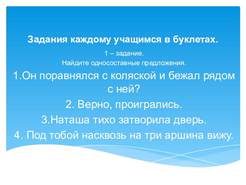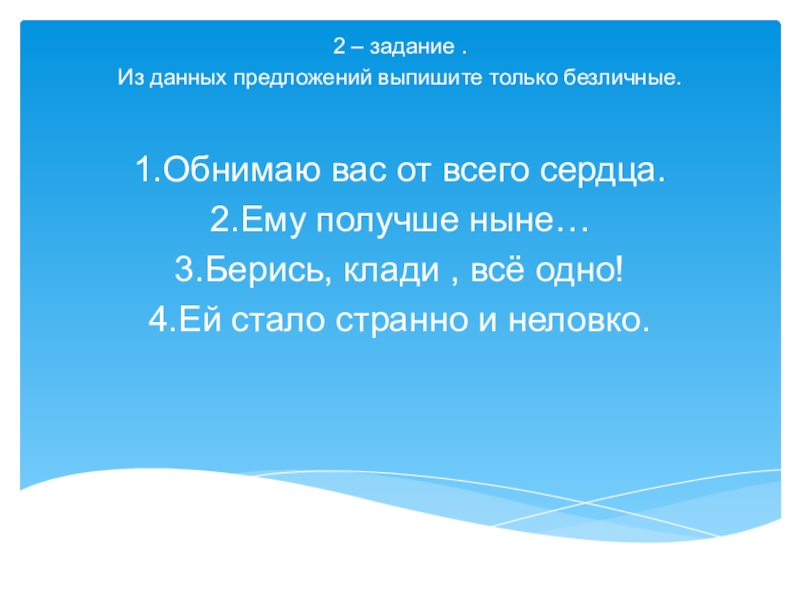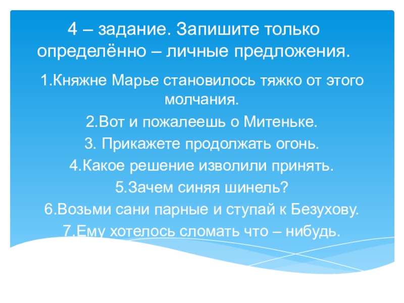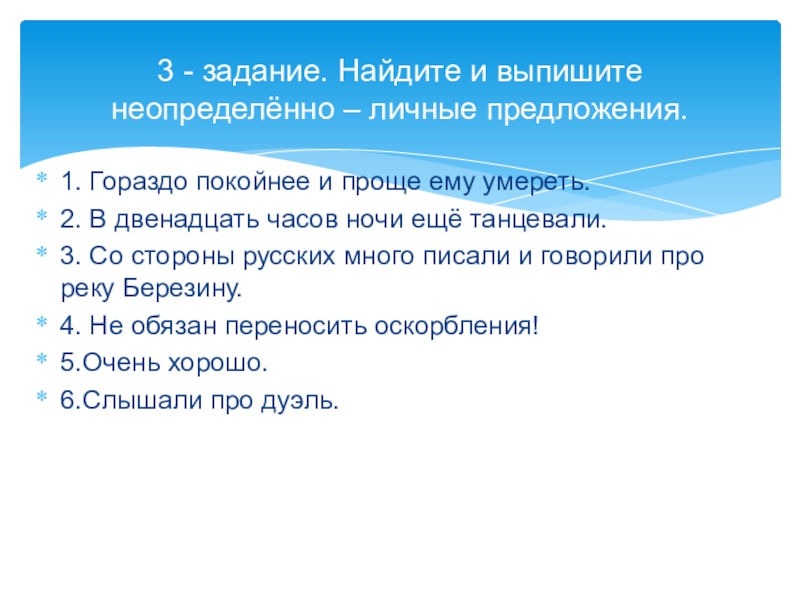 3 - задание. Найдите и выпишите неопределённо – личные предложения.