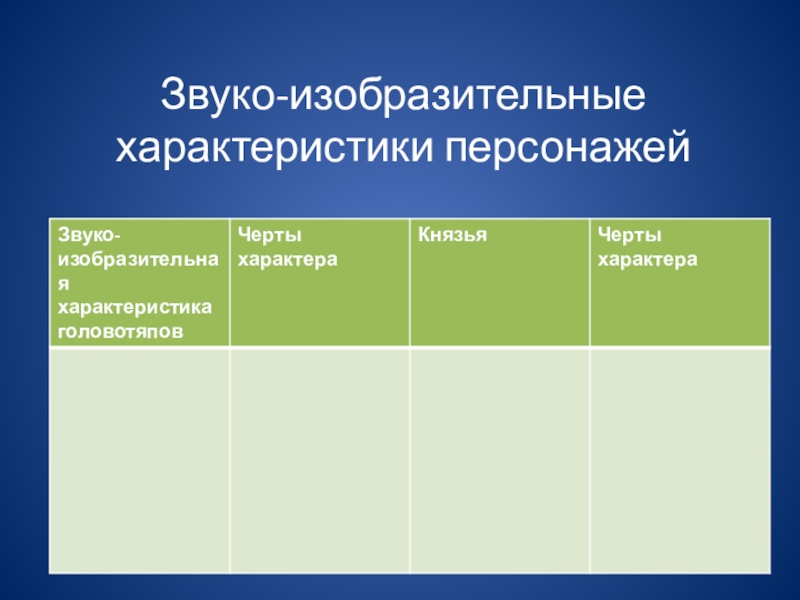 Слайд 14Звуко-изобразительные характеристики персонажей