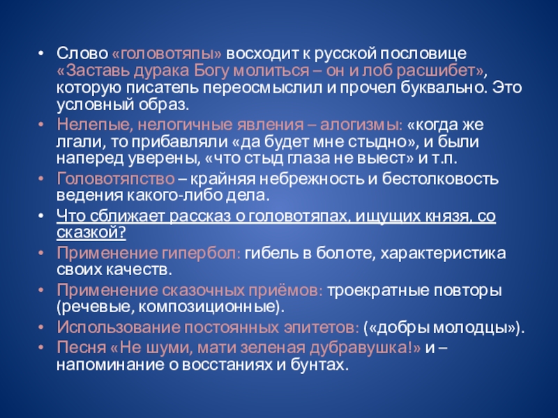 Слайд 10Слово «головотяпы» восходит к русской пословице «Заставь дурака Богу молиться –