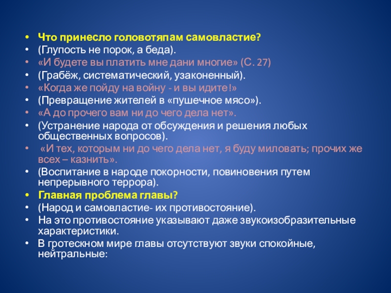 В гротескном мире главы отсутствуют звуки спокойные, нейтральные: