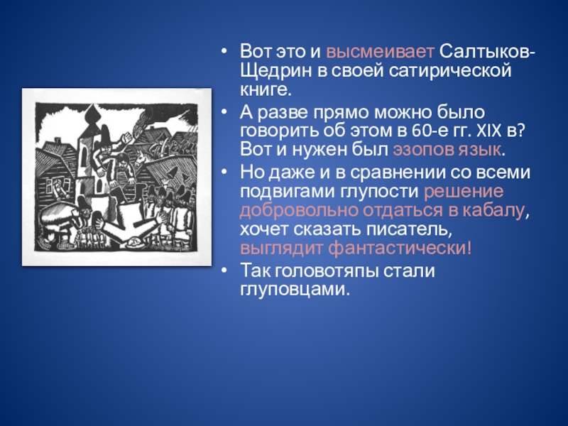 Слайд 12Вот это и высмеивает Салтыков-Щедрин в своей сатирической книге.