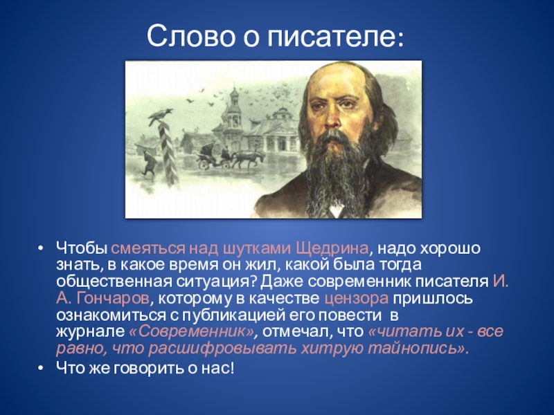 Чтобы смеяться над шутками Щедрина, надо хорошо знать, в