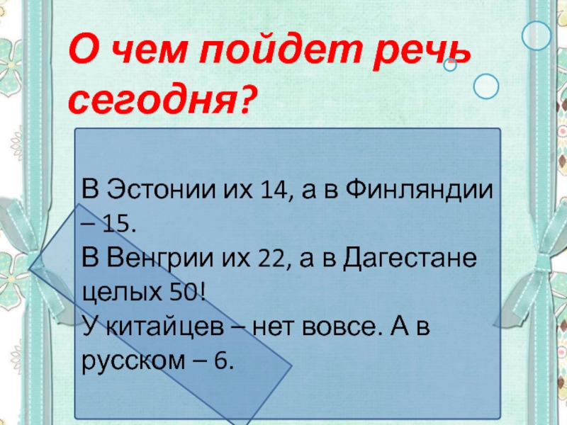О чем пойдет речь сегодня?В Эстонии их 14, а в Финляндии – 15.В Венгрии их 22, а