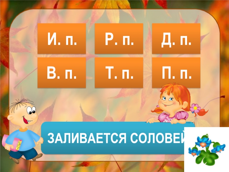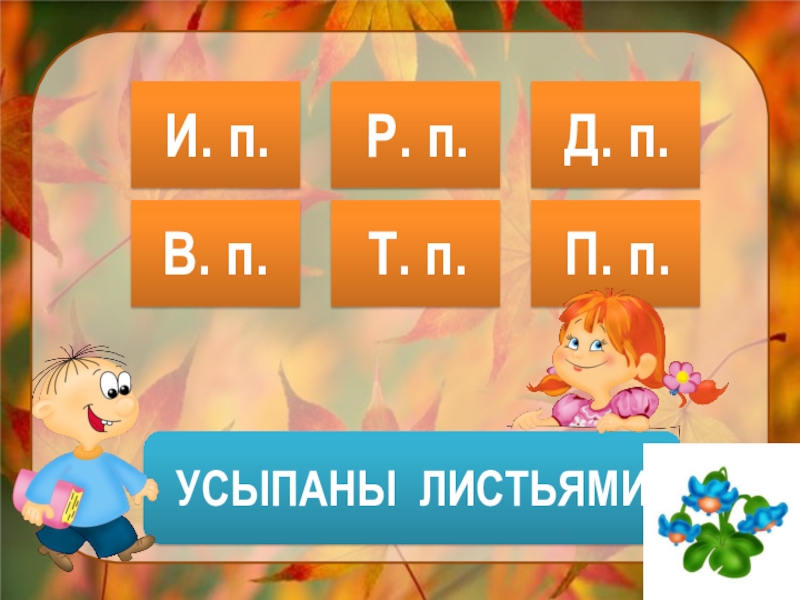 Р. п. Т. п.УСЫПАНЫ ЛИСТЬЯМИВ. п. Д. п. П. п. И. п.