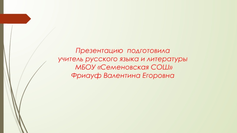 Презентацию подготовила учитель русского языка и литературы МБОУ «Семеновская СОШ» Фриауф Валентина Егоровна