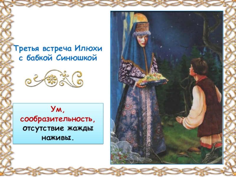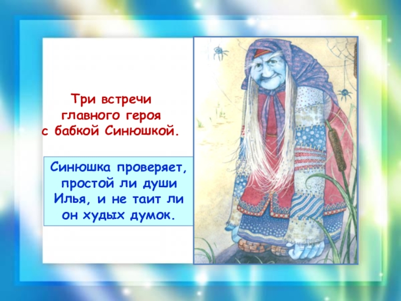 Синюшка проверяет, простой ли души Илья, и не таит ли он худых думок.