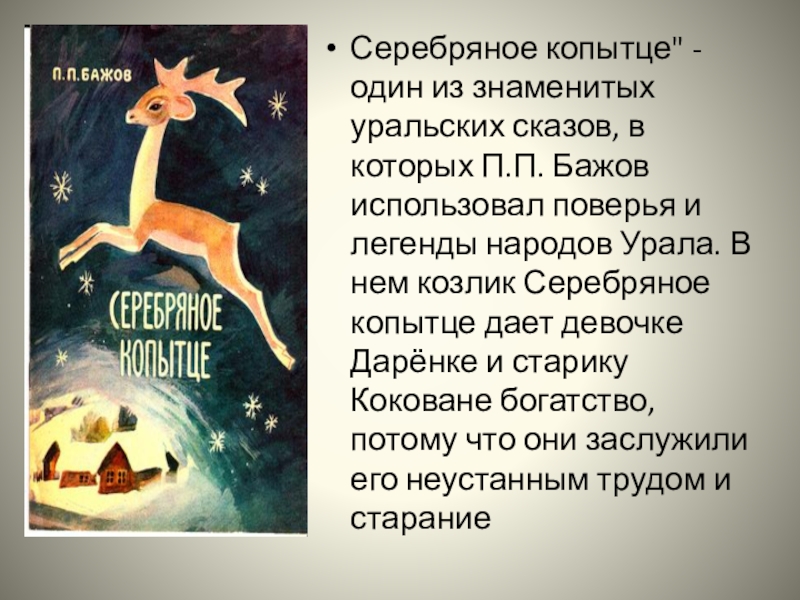 Слайд 15Серебряное копытце" - один из знаменитых уральских сказов, в которых П.П.