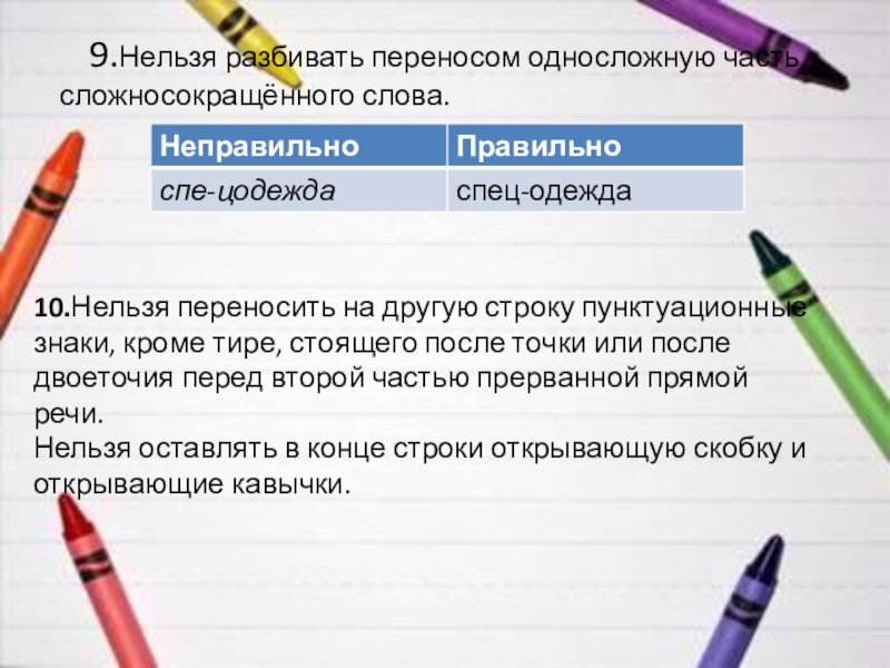 8.При переносе сложных слов нельзя оставлять в конце строки начальную часть второй основы, если эта часть не составляет слога.